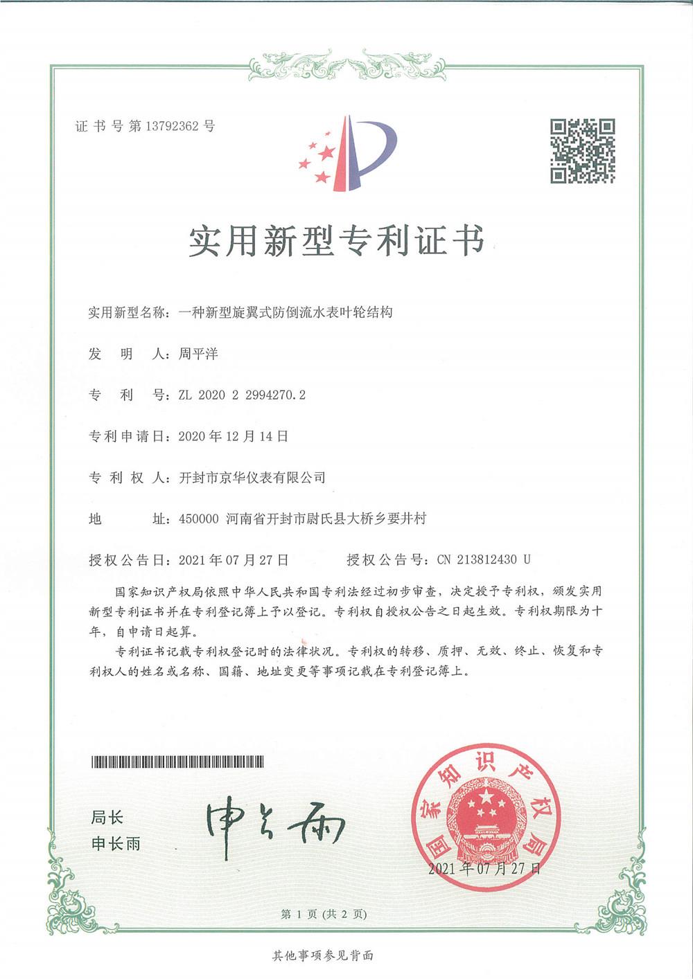 專利1一種新型旋翼式防倒流水…